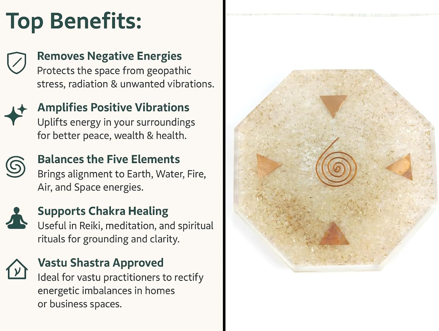 Kindly note that since all our products are handcrafted and handmade there always exists slight or minor deviations in size, colour, shape and looks compared to photo. However, the Metaphysical Properties and Healing Qualities will be excellent. The beauty of ORGONE is that it can be combined with various terminologies like Reiki, Usui, Karuna, Earth Elements, Arch Angel, Chokurei, Crystal Therapy, Chakra Balancing Therapy, Pyramid Therapy, Pendulum Therapy, Massage Ball Therapy, Vastu Therapy, Chakra Sanskrit Therapy, Generator Effects, Merkaba Sets, Healing with Massage Sticks and Wands. Orgone gives huge boost while working with above terms using gemstones and semiprecious stones. It works faster and better giving amazing benefits to human body compared to working with normal gemstones. Let orgone help calm your ever-increasing stressful environment, whether it is home, work or school. Not only are they beautiful but they're also a powerful tool to help physically, mentally and spiritually enhance your life and noticeably reduce negative energy. We welcome Wholesale Inquires& also recommend Customized Orders. Please do feel free to mail us at info@orgoneindia.com for more details. Orgone energy is the life force energy, which surrounds all life form when active. Orgone Pyramids Naturally attracts Positive Etheric energy then converts the negative orgone into positive ions. Let orgone help calm your ever-increasing stressful environment, whether it is home, work or school. Not only are they beautiful but they're also a powerful tool to help physically, mentally and spiritually enhance your life and noticeably reduce negative energy. Orgone also neutralises the harmful effects of EMF radiation all around us from electrical devices. These positive ions in the air are bad for our health. The job of orgone is to neutralise these positive ions and turn them into negative ions. These negative ions are prolific in nature and have a harmonising influence on our nervous system, moods, stress and overall health. Please do feel free to mail us at info@orgoneindia.com for more details. Please do feel free to mail us at info@orgoneindia.com for more details.