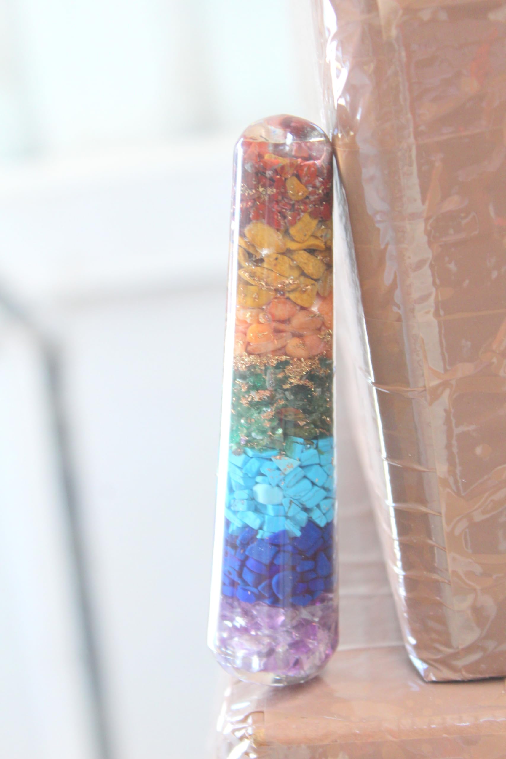 HOME » ORGONE PRODUCTS » ORGONE STICKS & WANDS » Chakra Layer Orgonite Smooth Massage Wand Stick.