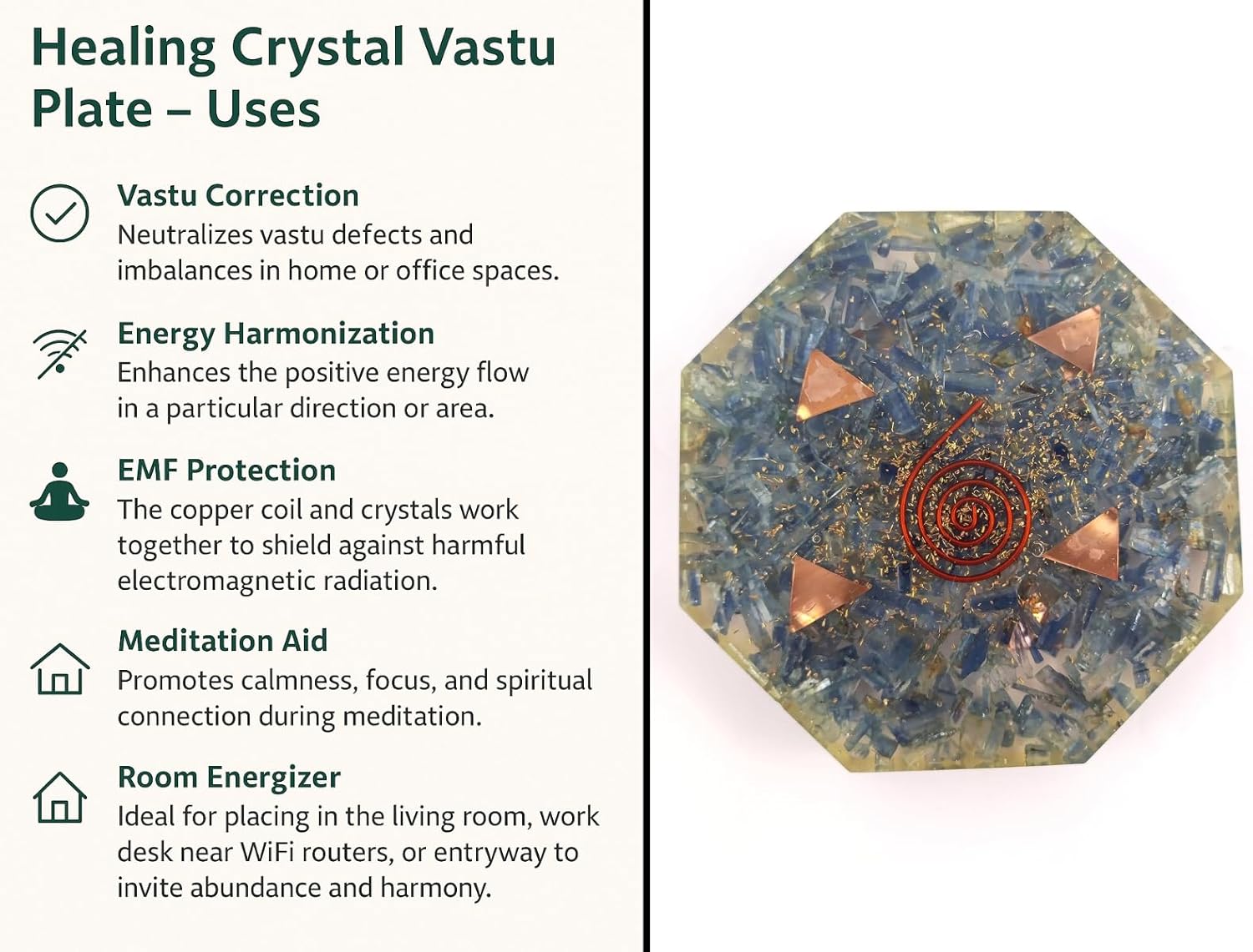 Kindly note that since all our products are handcrafted and handmade there always exists slight or minor deviations in size, colour, shape and looks compared to photo. However, the Metaphysical Properties and Healing Qualities will be excellent. The beauty of ORGONE is that it can be combined with various terminologies like Reiki, Usui, Karuna, Earth Elements, Arch Angel, Chokurei, Crystal Therapy, Chakra Balancing Therapy, Pyramid Therapy, Pendulum Therapy, Massage Ball Therapy, Vastu Therapy, Chakra Sanskrit Therapy, Generator Effects, Merkaba Sets, Healing with Massage Sticks and Wands. Orgone gives huge boost while working with above terms using gemstones and semiprecious stones. It works faster and better giving amazing benefits to human body compared to working with normal gemstones. Let orgone help calm your ever-increasing stressful environment, whether it is home, work or school. Not only are they beautiful but they're also a powerful tool to help physically, mentally and spiritually enhance your life and noticeably reduce negative energy. We welcome Wholesale Inquires& also recommend Customized Orders. Please do feel free to mail us at info@orgoneindia.com for more details. Orgone energy is the life force energy, which surrounds all life form when active. Orgone Pyramids Naturally attracts Positive Etheric energy then converts the negative orgone into positive ions. Let orgone help calm your ever-increasing stressful environment, whether it is home, work or school. Not only are they beautiful but they're also a powerful tool to help physically, mentally and spiritually enhance your life and noticeably reduce negative energy. Orgone also neutralises the harmful effects of EMF radiation all around us from electrical devices. These positive ions in the air are bad for our health. The job of orgone is to neutralise these positive ions and turn them into negative ions. These negative ions are prolific in nature and have a harmonising influence on our nervous system, moods, stress and overall health. Please do feel free to mail us at info@orgoneindia.com for more details.Please do feel free to mail us at info@orgoneindia.com for more details. Please do feel free to mail us at info@orgoneindia.com for more details.