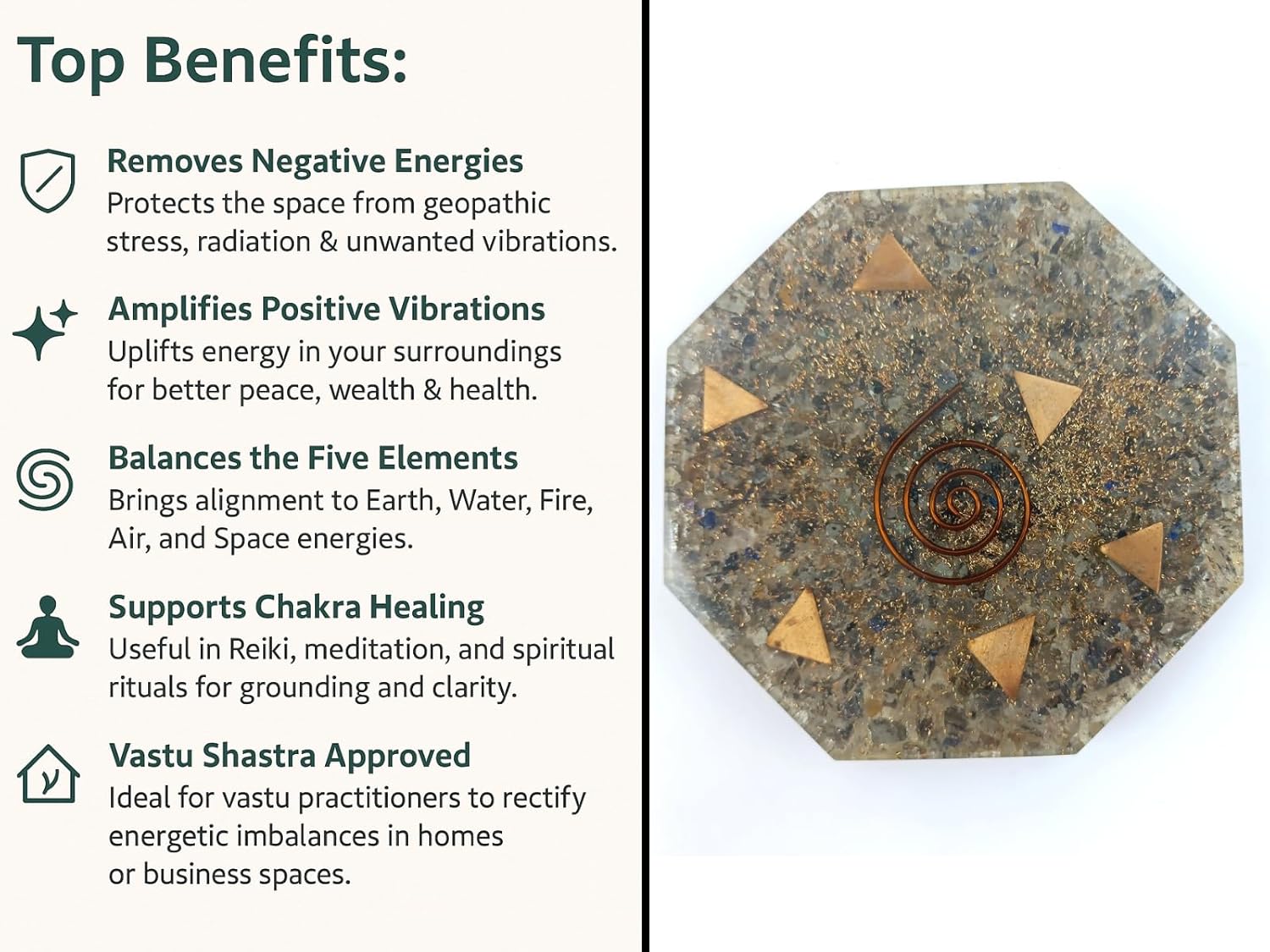 An orgone wand is an energy-balancing tool used to convert negative energy into positive energy, aimed at enhancing, balancing, and clearing the body's aura and chakras. It is commonly used for meditation, reducing physical pain, alleviating stress, improving mental focus, and mitigating electromagnetic field (EMF) pollution from electronics. Please do feel free to mail us at info@orgoneindia.com for more details.
