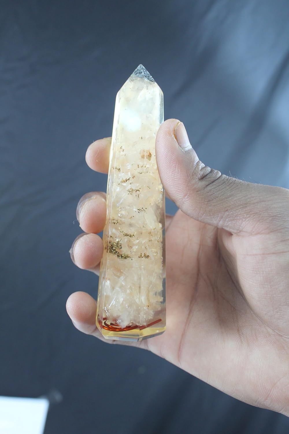 An orgone wand is an energy-balancing tool used to convert negative energy into positive energy, aimed at enhancing, balancing, and clearing the body's aura and chakras. It is commonly used for meditation, reducing physical pain, alleviating stress, improving mental focus, and mitigating electromagnetic field (EMF) pollution from electronics. Please do feel free to mail us at info@orgoneindia.com for more details.